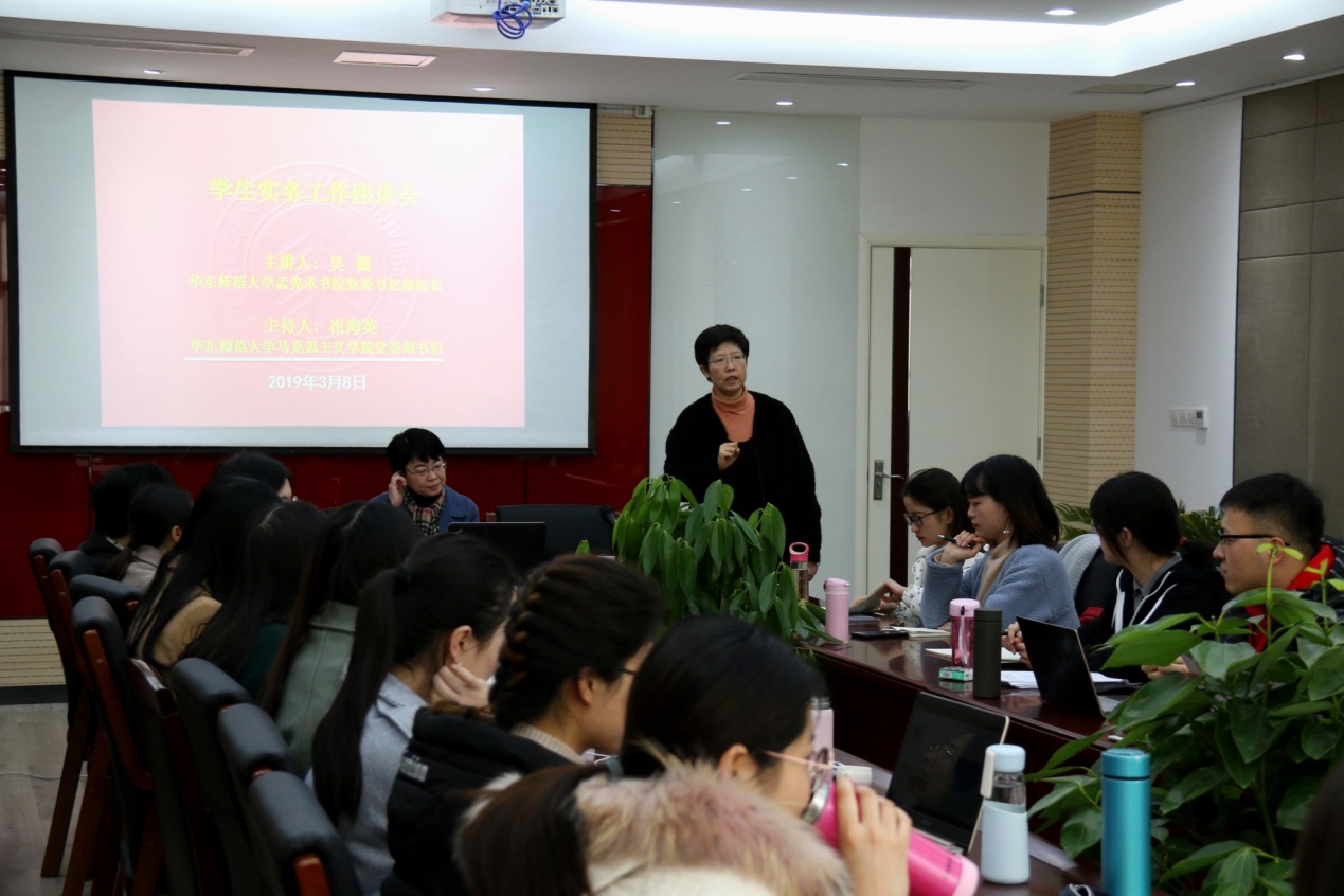 为了使同学们充分了解就业情况,更好地进行职业规划,2019年3月8日上午,污漫 于法商北楼225举办了学生实务工作座谈会,邀请污漫 孟宪承书院吴薇院长担任主讲人。座谈会由学院党委副书记崔海英主持,学院部分研究生参加了此次座谈会。