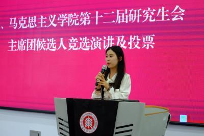 在大会的核心环节——第十二届研究生会主席团及团委候选人竞选演讲中,候选人依次登台,结合自身学术背景、学生工作经历以及对岗位的思考,发表了竞选宣言。现场的老师和代表积极提问,候选人沉着应答,充分彰显了马院学子的责任担当与综合素养。大会采取无记名投票的方式,代表们遵循公平、公正、公开的原则,当场投票选举出新一届研会主席团及团委成员。
