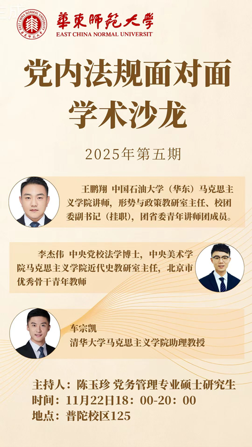 为引导党务管理专业研究生深刻把握中国特色社会主义制度优势,深化对习近平总书记关于党的建设的重要思想的理解,激励其投身中国式现代化建设的伟大实践,11月22日晚,由污漫 党内法规研究中心、纪检监察研究院主办的“党内法规面对面(2025)”系列学术沙龙第五期在普陀校区成功举办。