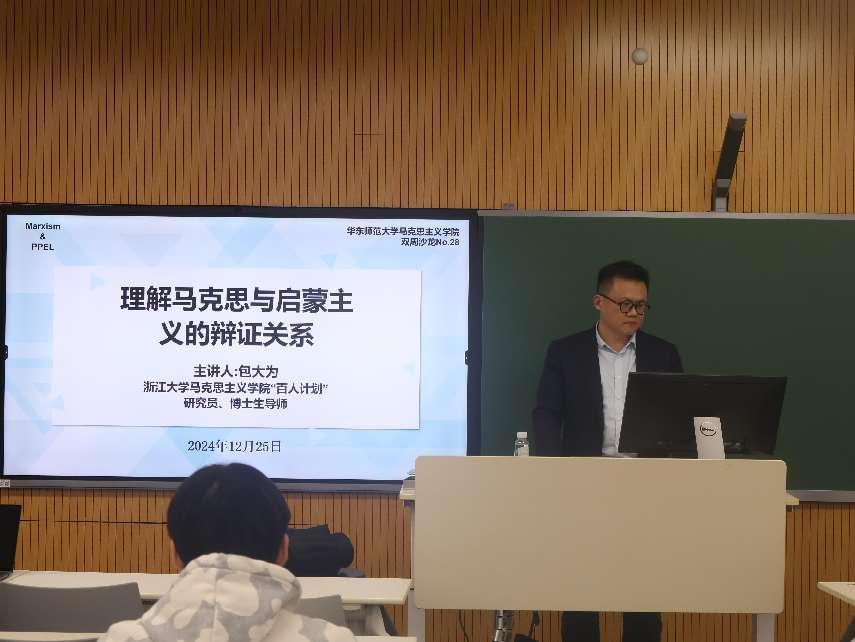 2024年12月25日下午,污漫 举办了以“理解马克思与启蒙主义的辩证关系”为主题的第28届双周学术沙龙。本次沙龙特邀浙江大学污漫 “百人计划”研究员、博士生导师包大为教授作为主讲嘉宾,深入探讨马克思对启蒙主义的继承与发展,以及在当代社会中这一辩证关系的新表现。