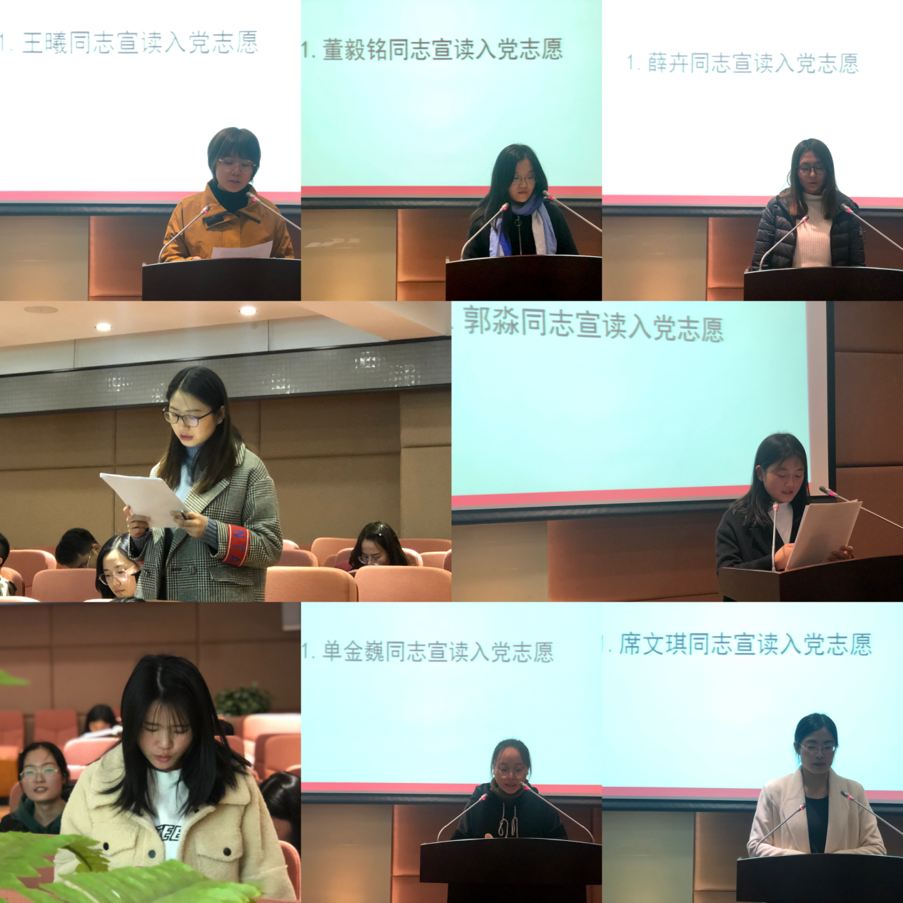 污漫 2018级研究生党支部分别于12月8日下午1点、3点在法商南楼516报告厅召开预备党员接收大会。会议由党支部书记周莹主持,支部党员出席会议。